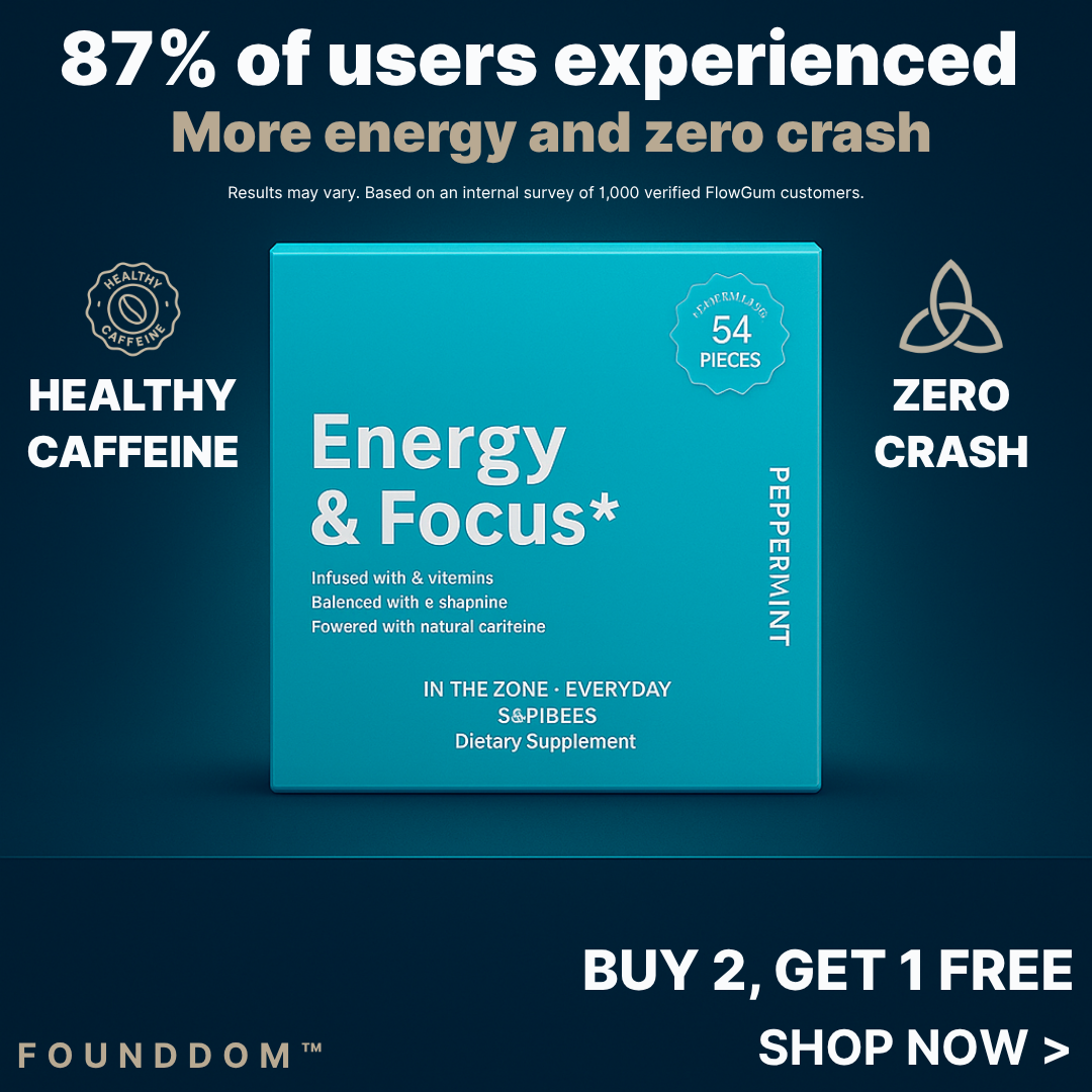 That's why we created FlowGum—a precision blend of caffeine, L-theanine, and B-vitamins that absorbs through your mouth for fast-acting, calm energy. No jitters, no 3am crash—just sharp focus and control in 5 minutes.